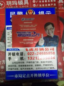 飛虎開鎖有限公司天津分公司全年24小時上門服務,主要從事開鎖、修鎖、換鎖芯、安裝鎖具、貓眼、對講門、改門把手,承包鎖具工程的改造,開修各種保險 柜、文件柜、異型鎖、磁力鎖、電子密碼箱鎖、防盜門、各種高、中、低檔汽車鎖,配精密高端鑰匙、電子芯片鑰匙及國外異形鑰匙等。并經(jīng)銷各種高中檔防盜門、 木門、室內(nèi)門、指紋門、各式各樣鎖芯、各種各樣的鎖具及開鎖工具。